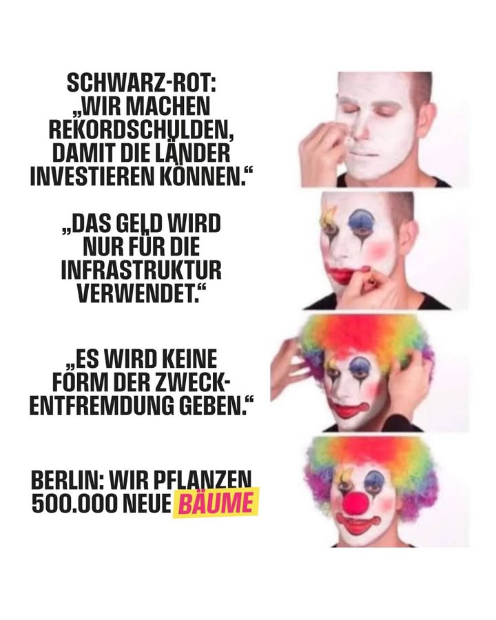 500 Milliarden Euro neue Schulden für Investitionen in Straßen, Brücken, Krankenhäuser, Digitalisierung und mehr. So wurde es allen von der Regierung Merz versprochen. Die Realität zeichnet ein anderes Bild: Das CDU-geführte Berlin will jetzt für 3,2 Milliarden Euro neue Bäume pflanzen… Das muss gestoppt werden. Schluss mit Schulden für Wahlgeschenke zu Lasten der jungen Generation, Schluss mit dieser Zweckentfremdung!